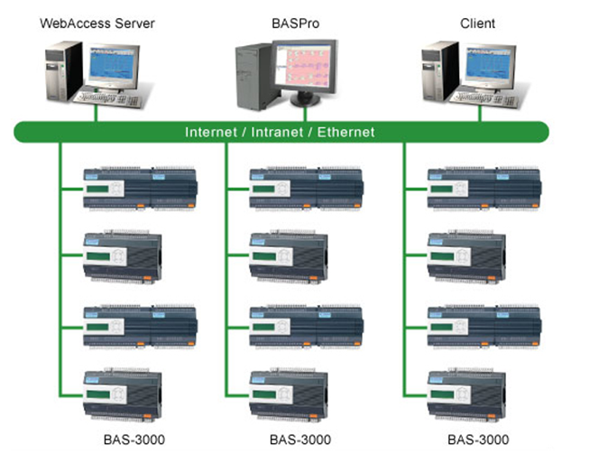 系統(tǒng)架構(gòu)圖:![]() 系統(tǒng)描述:冷源系統(tǒng)監(jiān)控:酒店的冷源系統(tǒng)由冷凍機(jī)組,冷凍水泵,冷卻塔,冷卻泵,膨脹水箱、壓差分路器組成。中央監(jiān)控系統(tǒng)通過Modbus接口與冷凍機(jī)組共享實(shí)時通信并監(jiān)控設(shè)備的運(yùn)行狀態(tài),而機(jī)房內(nèi)的現(xiàn)場控制器控制相關(guān)的現(xiàn)場設(shè)備。 空調(diào)及新風(fēng)系統(tǒng)監(jiān)測:五星級酒店的要求超出標(biāo)準(zhǔn)酒店。鉑爾曼酒店依靠中央監(jiān)控系統(tǒng)來監(jiān)控所有設(shè)備的運(yùn)行狀態(tài)。各種高精密元件采集酒店內(nèi)的溫度和濕度并通過空調(diào)室的現(xiàn)場控制器(DDC)來調(diào)整送風(fēng)機(jī)和加濕器,以確保酒店內(nèi)空氣的濕度和溫度。 送風(fēng)和排氣系統(tǒng)監(jiān)測:酒店的送風(fēng)及排氣系統(tǒng)依靠中央監(jiān)控系統(tǒng)來監(jiān)控所有排氣裝置的運(yùn)行狀態(tài)以及空調(diào)機(jī)手動和自動狀態(tài)轉(zhuǎn)換,以確??照{(diào)機(jī)組是否處于樓宇自動控制狀態(tài),如果處于此狀態(tài),即可控制通風(fēng)機(jī)的啟停。當(dāng)系統(tǒng)出現(xiàn)異常時,它會通過網(wǎng)絡(luò)通信在中央監(jiān)控室的屏幕上以文字或圖像顯示現(xiàn)場狀態(tài),并發(fā)出語音警報提醒工作人員。重要的數(shù)據(jù)還可打印作為記錄。 給排水系統(tǒng)監(jiān)控:酒店的供水和排水系統(tǒng)依靠中央監(jiān)控系統(tǒng)來監(jiān)控設(shè)備的工作狀態(tài),包括蓄水池的高/低水位報警,生活用水水箱的高/低水位報警,活水泵的運(yùn)行狀態(tài),活水泵的故障報警,保護(hù)槽的高/低水水位報警,排水泵的運(yùn)行狀態(tài),排水泵的故障報警。 總結(jié):以上案例來自研華官網(wǎng)