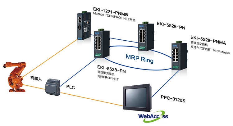 ▌▌方案設(shè)計(jì)為滿足客戶定制開發(fā)軟件的需求,研華科技推薦PPC-3120S+WebAccess/HMI,其中PPC-3120S 是基于X86架構(gòu)的硬件平臺(tái)一體機(jī),通用性強(qiáng)同時(shí)具備較好的擴(kuò)展功能(可以外接各種外設(shè),例如:條碼槍 顯示器 打印機(jī)等等),并且可市面上大部分品牌的PLC 直接連接通訊 。與PPC-3120S搭配應(yīng)用的研華Webacces/HMI人際界面軟件,不僅具備強(qiáng)大的圖形界面數(shù)據(jù)庫(kù),可提供友好的易于整合的開發(fā)工具。最重要的是可以支持客戶需求的軟件定制,滿足客戶特殊化要求。另外PPC-3120S采用全平面觸摸屏設(shè)計(jì),機(jī)身美觀,緊湊輕薄,適用于客戶現(xiàn)場(chǎng)多種安裝方式。同時(shí)兼具獨(dú)特的智能E-eye設(shè)計(jì),可監(jiān)測(cè)一體機(jī)各個(gè)接口正常與否狀態(tài)。 為實(shí)現(xiàn)PPC-3120S與客戶現(xiàn)有PLC設(shè)備的通訊,研華科技推薦EKI-5500/5600系列協(xié)議交換機(jī)+EKI-1221IEIMB和EKI-1221PNMB協(xié)議網(wǎng)關(guān)的解決方案。在此方案中EKI-5500/5600系列協(xié)議交換機(jī),支持Profinet、EtherNet/IP和Modbus/TCP,提供跨協(xié)議通訊,實(shí)現(xiàn)設(shè)備、PLC、中控室等平臺(tái)系統(tǒng)間的有效溝通。EKI-1221IEIMB和EKI-1221PNMB協(xié)議網(wǎng)關(guān)設(shè)備,支持Modbus TCP to Profinet或EtherNet/IP, 提供協(xié)議轉(zhuǎn)換, 兼容現(xiàn)有設(shè)備,無(wú)需采購(gòu)昂貴的新設(shè)備。