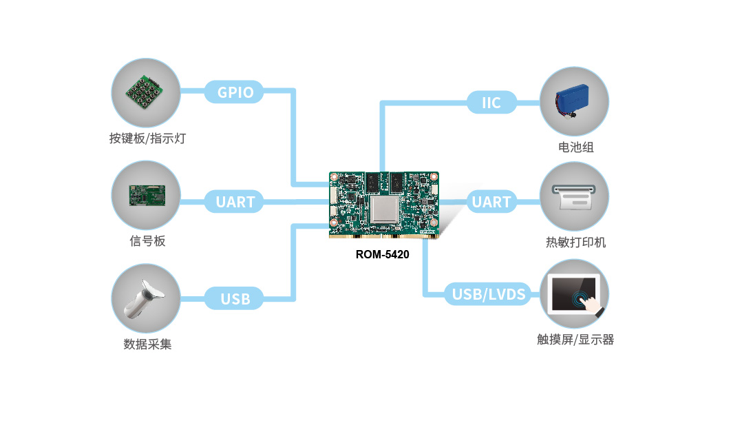 ▌▌研華方案研華ROM-5420采用的NXP ARM Cortex-A9 i.MX6 高性能處理器,強(qiáng)大的i.MX6支持2D/3D圖形加速器,以及1080P全高清硬編解碼。核心板使用SMARC v1.1標(biāo)準(zhǔn),支持-40~85°C寬溫,嚴(yán)格的硬件設(shè)計(jì)使其可以長時(shí)間穩(wěn)定運(yùn)行。除此之外,ROM-5420還支持PCIe擴(kuò)展、SATA、USB、UART、SPI、CAN bus等多種資源接口,可連接豐富的外設(shè)實(shí)現(xiàn)不同數(shù)據(jù)的采集處理。 ?
