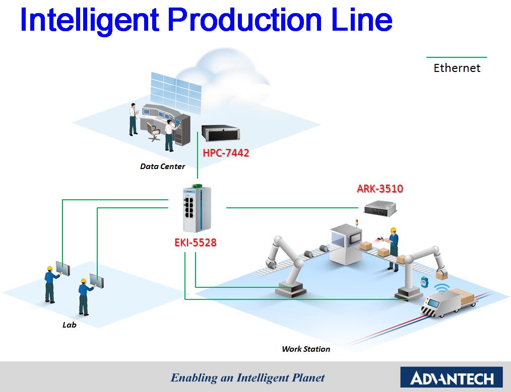 研華的EKI-5000系列交換機(jī)為將自動(dòng)化設(shè)備鏈接在一起提供了靈活的兼容性,并且對(duì)于隔離電磁干擾以確保網(wǎng)絡(luò)穩(wěn)定性非常有效。此外,EKI-5000系列的平均故障間隔時(shí)間超過大約300萬小時(shí),與競爭產(chǎn)品相比,它具有更高的網(wǎng)絡(luò)可靠性。在研華交換機(jī)的幫助下,Symteck Automation Asia能夠在車間連接所有設(shè)備,并建立了互連的智能生產(chǎn)線。 ▌▌項(xiàng)目實(shí)施