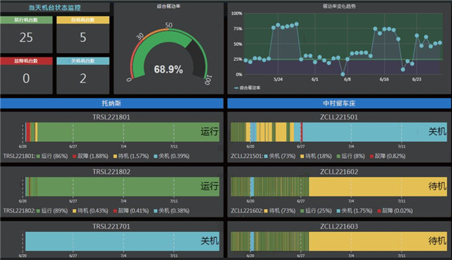 所有設(shè)備的狀態(tài)、稼動率也以直觀的方式顯示出來;